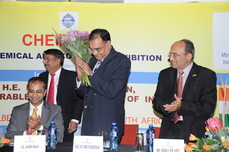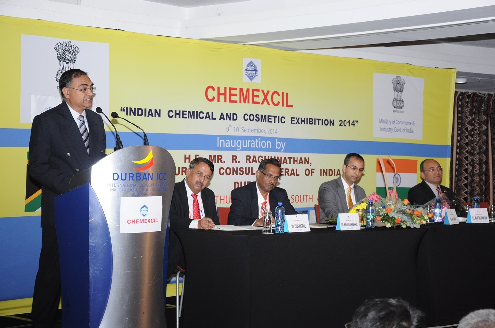 H.E. Mr. R. Raghunathan, Hon’ble Consul General of India, Durban who was the Chief Guest delivering his Inaugural address of the Indian Chemical & Cosmetics Exhibition held on 9th Sept. 2014 at Durban, S.Africa.